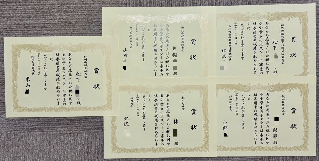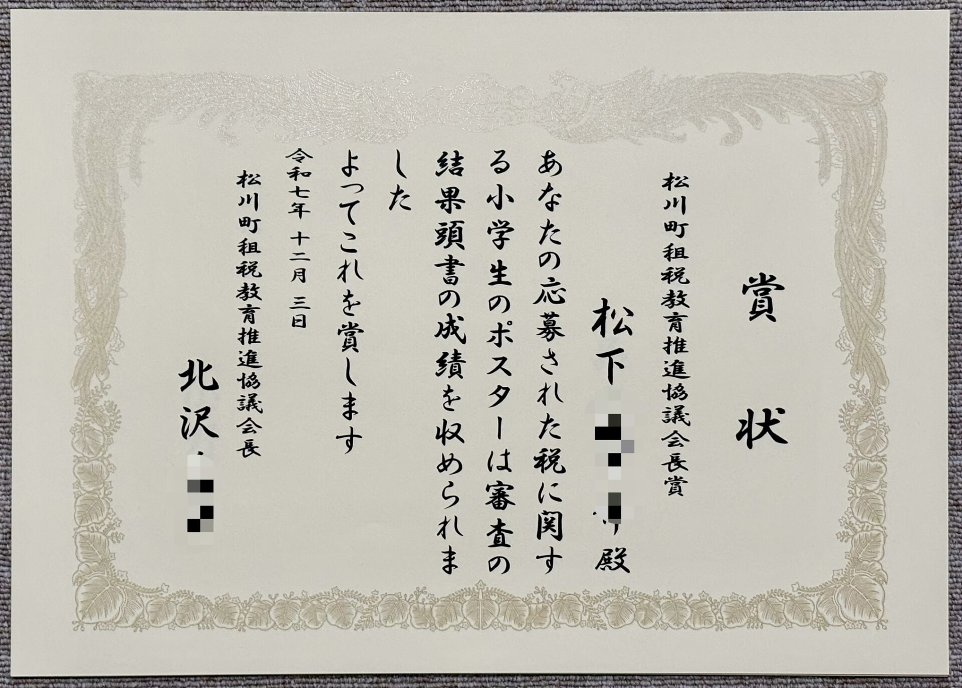 税に関するポスターの賞状を書かせていただきました
